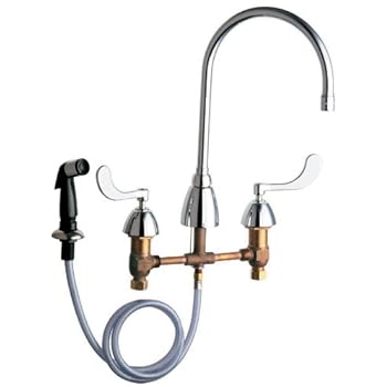 Chicago Faucets 200-AGN8AE3-317CP Rigid/Swing Gooseneck Spout Kitchen Faucet with Black Side Spray, Chrome. Reviewed by Peter M. Rating: