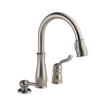 Delta Faucet 978-SSSD-DST Leland Single Handle Pull-Down Kitchen Faucet with Soap Dispenser, Stainless. Reviewed by Jake B. Rating: