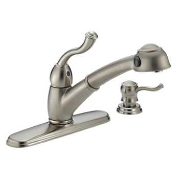 Delta 473-SSSD Saxony Single-Handle Kitchen Pullout Faucet with Soap Dispenser, Stainless. Reviewed by Eric G. Rating: