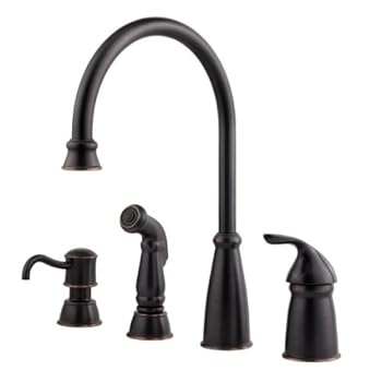 Pfister T26-4CBY Avalon Single Handle 4-Hole Kitchen Faucet with Sidespray and Soap Dispenser, Tuscan Bronze. Reviewed by Mike S. Rating: